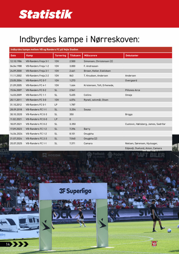 Indbyrdes kampe mellem VB og Randers FC på Vejle Stadion | |||||
