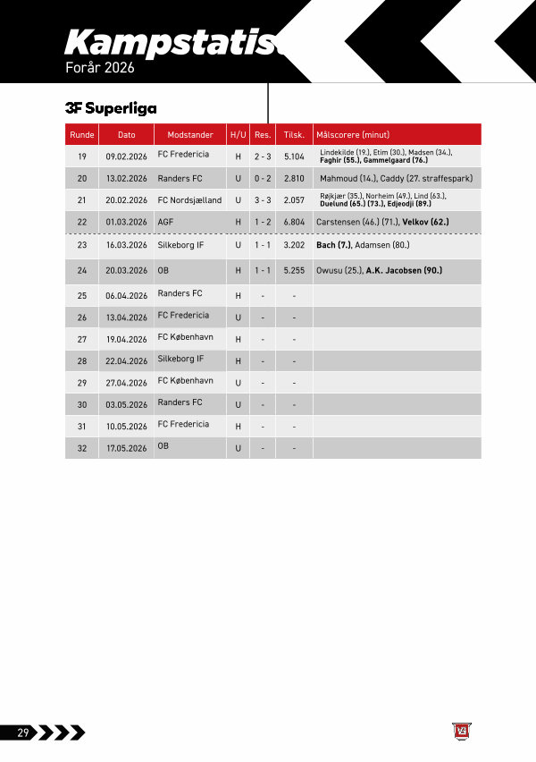 22 01.03.2026 AGF H 1- 2 6.804 Carstensen( 46.)( 71.), Velkov( 62.)
