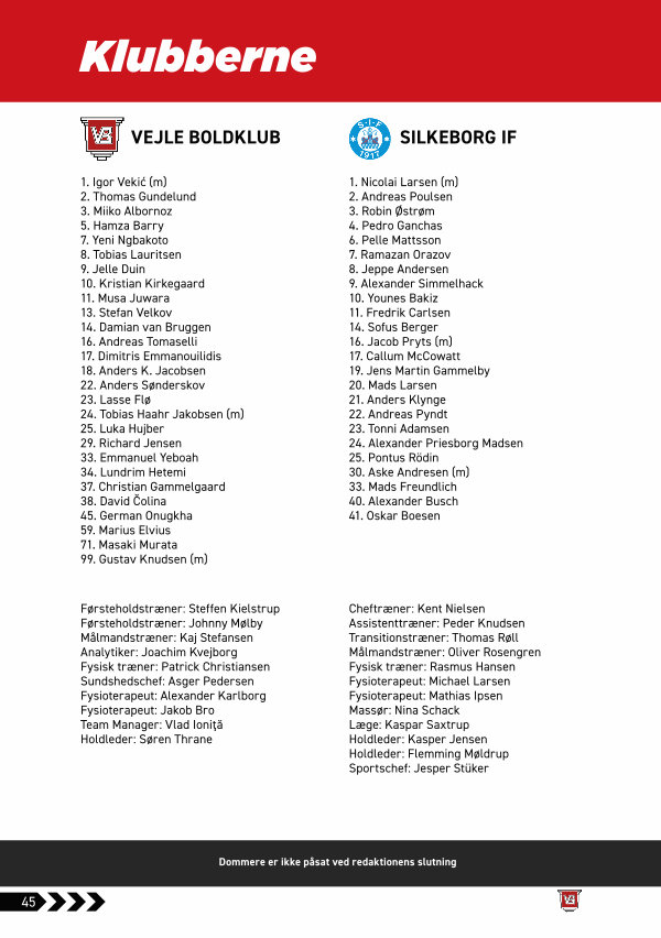 1. Igor Vekić( m) 2. Thomas Gundelund 3. Miiko Albornoz 5. Hamza Barry 7. Yeni Ngbakoto 8. Tobias Lauritsen 9. Jelle Duin 10. Kristian Kirkegaard 11. Musa Juwara 13. Stefan Velkov 14. Damian van Bruggen 16. Andreas Tomaselli 17. Dimitris Emmanouilidis 18. Anders K. Jacobsen 22. Anders Sønderskov 23. Lasse Flø 24. Tobias Haahr Jakobsen( m) 25. Luka Hujber 29. Richard Jensen 33. Emmanuel Yeboah 34. Lundrim Hetemi 37. Christian Gammelgaard 38. David Čolina 45. German Onugkha 59. Marius Elvius 71. Masaki Murata 99. Gustav Knudsen( m)