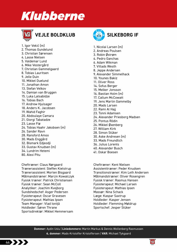 Dommer: Aydin Uslu | Liniedommere: Martin Markus & Dennis Wollenberg Rasmussen 4. dommer: Mads-Kristoffer Kristoffersen | VAR: Michael Tykgaard