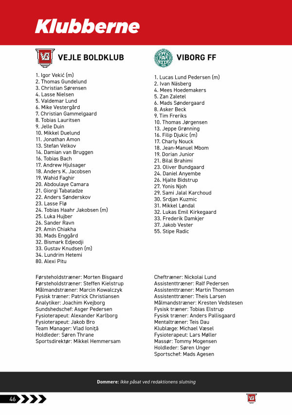 1. Lucas Lund Pedersen( m) 2. Ivan Näsberg 4. Mees Hoedemakers 5. Zan Zaletel 6. Mads Søndergaard 8. Asker Beck 9. Tim Freriks 10. Thomas Jørgensen 13. Jeppe Grønning 16. Filip Djukic( m) 17. Charly Nouck 18. Jean-Manuel Mbom 19. Dorian Junior 21. Bilal Brahimi 23. Oliver Bundgaard 24. Daniel Anyembe 26. Hjalte Bidstrup 27. Yonis Njoh 29. Sami Jalal Karchoud 30. Srdjan Kuzmic 31. Mikkel Løndal 32. Lukas Emil Kirkegaard 33. Frederik Damkjer 37. Jakob Vester 55. Stipe Radic