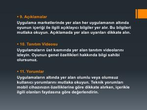 Uygulama marketlerinde yer alan her uygulamanın altında oyunun içeriği ile ilgili açıklayıcı bilgiler yer alır . Bu bilgileri mutlaka okuyun . Açıklamada yer alan uyarıları dikkate alın .