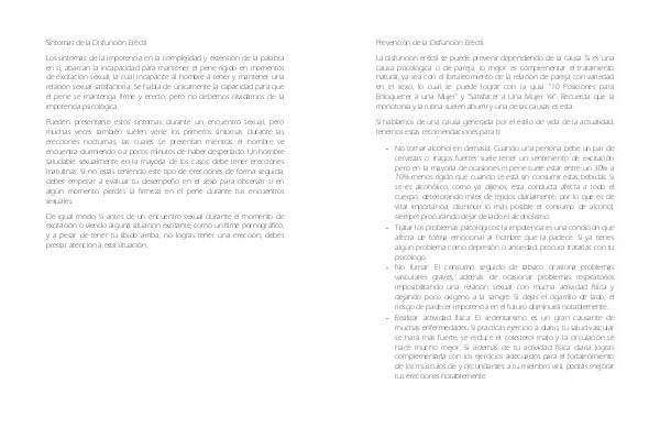 La disfunción eréctil se puede prevenir dependiendo de la causa. Si es una causa psicológica o de pareja, lo mejor es complementar el tratamiento natural, ya sea con el fortalecimiento de la relación de pareja con variedad en el sexo, lo cual se puede lograr con la guía“ 10 Posiciones para Enloquecer a una Mujer” y“ Satisfacer a Una Mujer Ya”. Recuerda que la monotonía y la rutina suelen aburrir y una de las causas es esta.