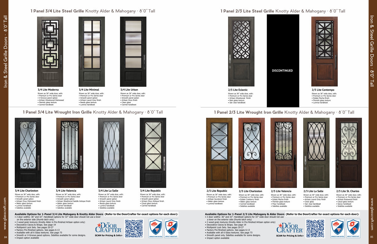 1 Panel 2 / 3 Lite Wrought Iron Grille Knotty Alder & Mahogany • 8 ´ 0˝ Tall