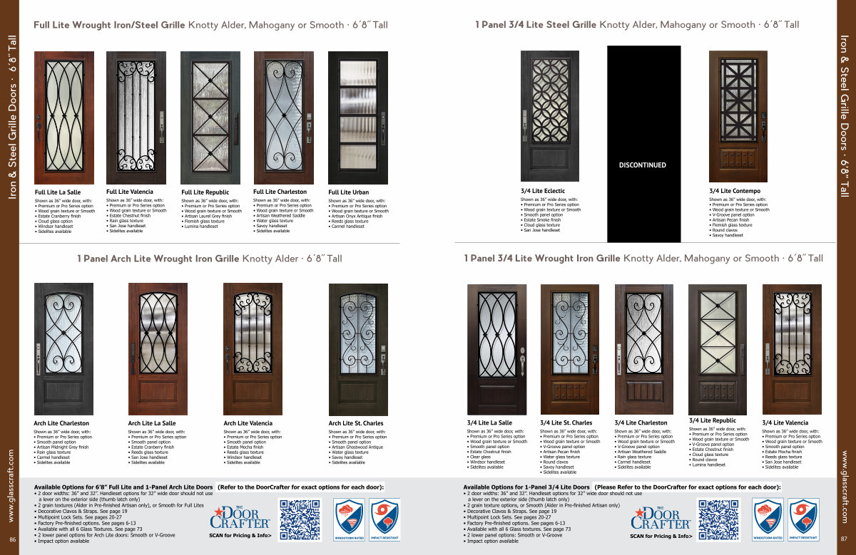 Available Options for 6’ 8” Full Lite and 1-Panel Arch Lite Doors( Refer to the DoorCrafter for exact options for each door):