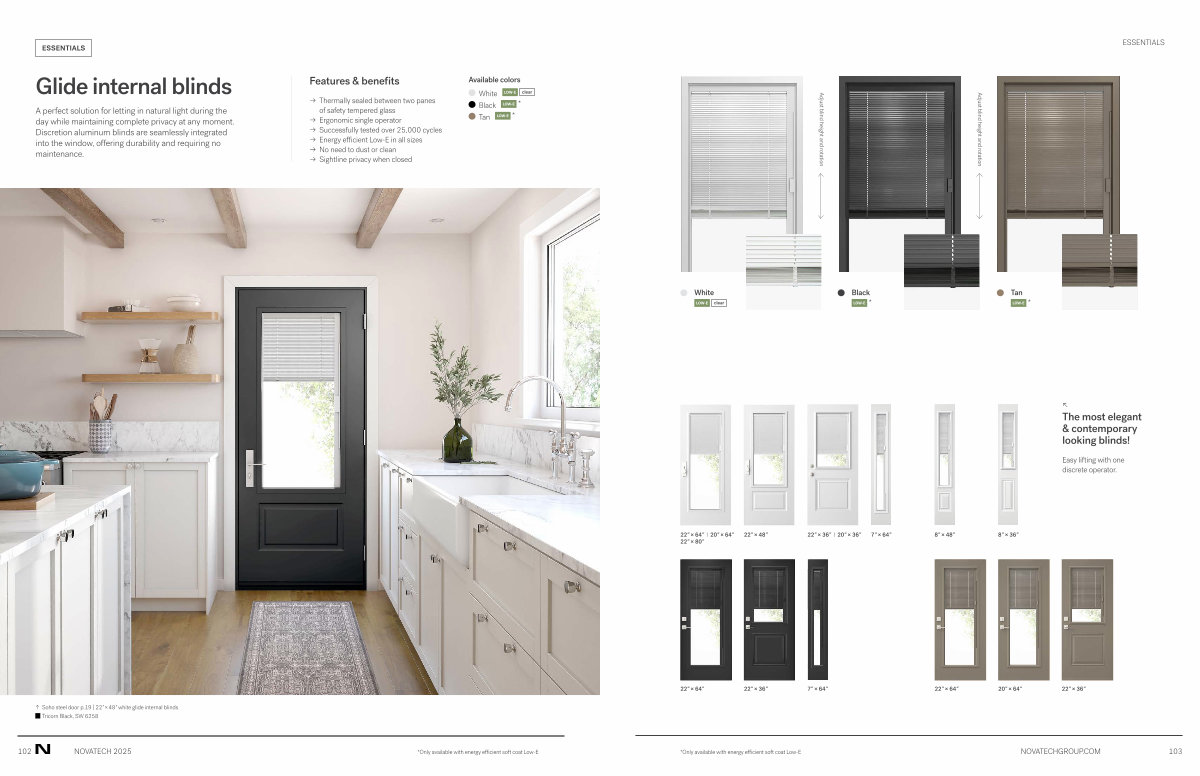 ↑ Soho steel door p. 19 | 22 " × 48 " white glide internal blinds Tricorn Black, SW 6258