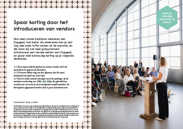 Een bedrijf dat een nieuwe vendor aandraagt moet zelf al deelnemer zijn van het eerstvolgende event van Engaged. De