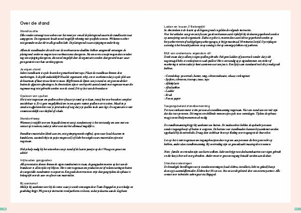 de vastgestelde standruimte te exposeren. Een goede doorstroom en vrije doorgang tijdens de opbouw is