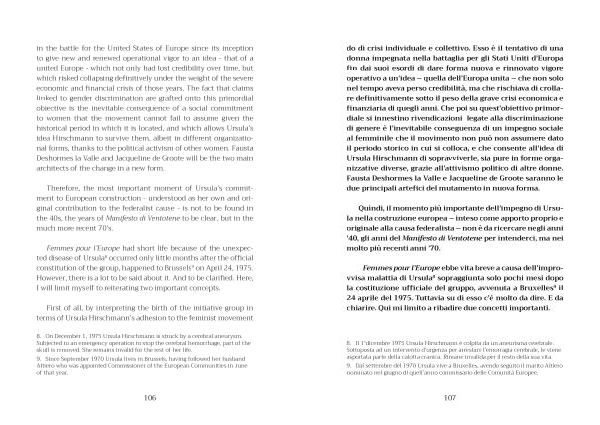 Femmes pour l ’ Europe ebbe vita breve a causa dell ’ improvvisa malattia di Ursula 8 sopraggiunta solo pochi mesi dopo la costituzione ufficiale del gruppo , avvenuta a Bruxelles 9 il 24 aprile del 1975 . Tuttavia su di esso c ’ è molto da dire . E da chiarire . Qui mi limito a ribadire due concetti importanti .