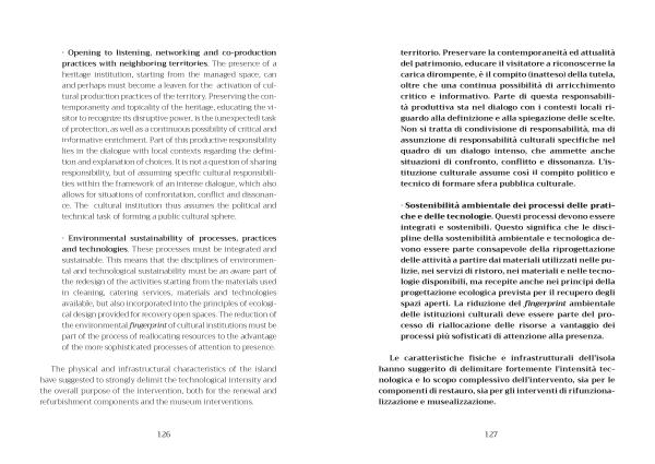 · Opening to listening , networking and co-production practices with neighboring territories . The presence of a heritage institution , starting from the managed space , can and perhaps must become a leaven for the activation of cultural production practices of the territory . Preserving the contemporaneity and topicality of the heritage , educating the visitor to recognize its disruptive power , is the ( unexpected ) task of protection , as well as a continuous possibility of critical and informative enrichment . Part of this productive responsibility lies in the dialogue with local contexts regarding the definition and explanation of choices . It is not a question of sharing responsibility , but of assuming specific cultural responsibilities within the framework of an intense dialogue , which also allows for situations of confrontation , conflict and dissonance . The cultural institution thus assumes the political and technical task of forming a public cultural sphere .