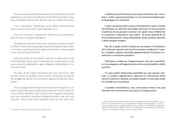 Vi sono molte definizioni possibili ma , per questo articolo ci sembra significativo riportare la riflessione dello storico Federico Chabod , secondo il quale vi sono due modi di considerare la nazione :