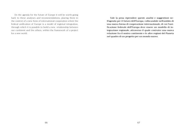 On the agenda for the future of Europe it will be worth going back to these analyses and recommendations , placing them in the context of a new form of international cooperation where the federal unification of Europe is a model of regional integration , through which it is possible to build a new relationship between our continent and the others , within the framework of a project for a new world .