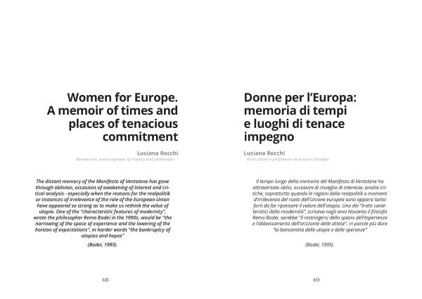 Il tempo lungo della memoria del Manifesto di Ventotene ha attraversato oblio , occasioni di risveglio di interesse , analisi critiche , soprattutto quando le ragioni della realpolitik o momenti d ’ irrilevanza del ruolo dell ’ Unione europea sono apparsi tanto forti da far ripensare il valore dell ’ utopia . Uno dei “ tratti caratteristici della modernità ”, scriveva negli anni Novanta il filosofo Remo Bodei , sarebbe “ il restringersi dello spazio dell ’ esperienza e l ’ abbassamento dell ’ orizzonte delle attese ”, in parole più dure “ la bancarotta delle utopie e delle speranze ”