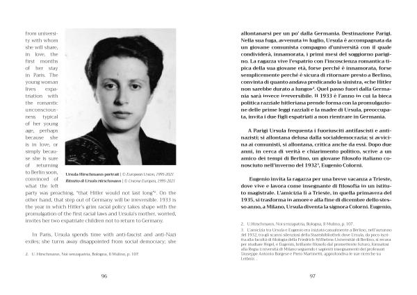 A Parigi Ursula frequenta i fuoriusciti antifascisti e antinazisti ; si allontana delusa dalla socialdemocrazia ; si avvicina ai comunisti , si allontana , critica anche da essi . Dopo due anni , in cerca di verità e chiarimento politico , scrive a un amico dei tempi di Berlino , un giovane filosofo italiano conosciuto nell ’ inverno del 1932 3 , Eugenio Colorni .