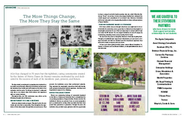 Stevenson alumni make an impact. They give back to the uni- and a commitment to serving others are ideals that have been