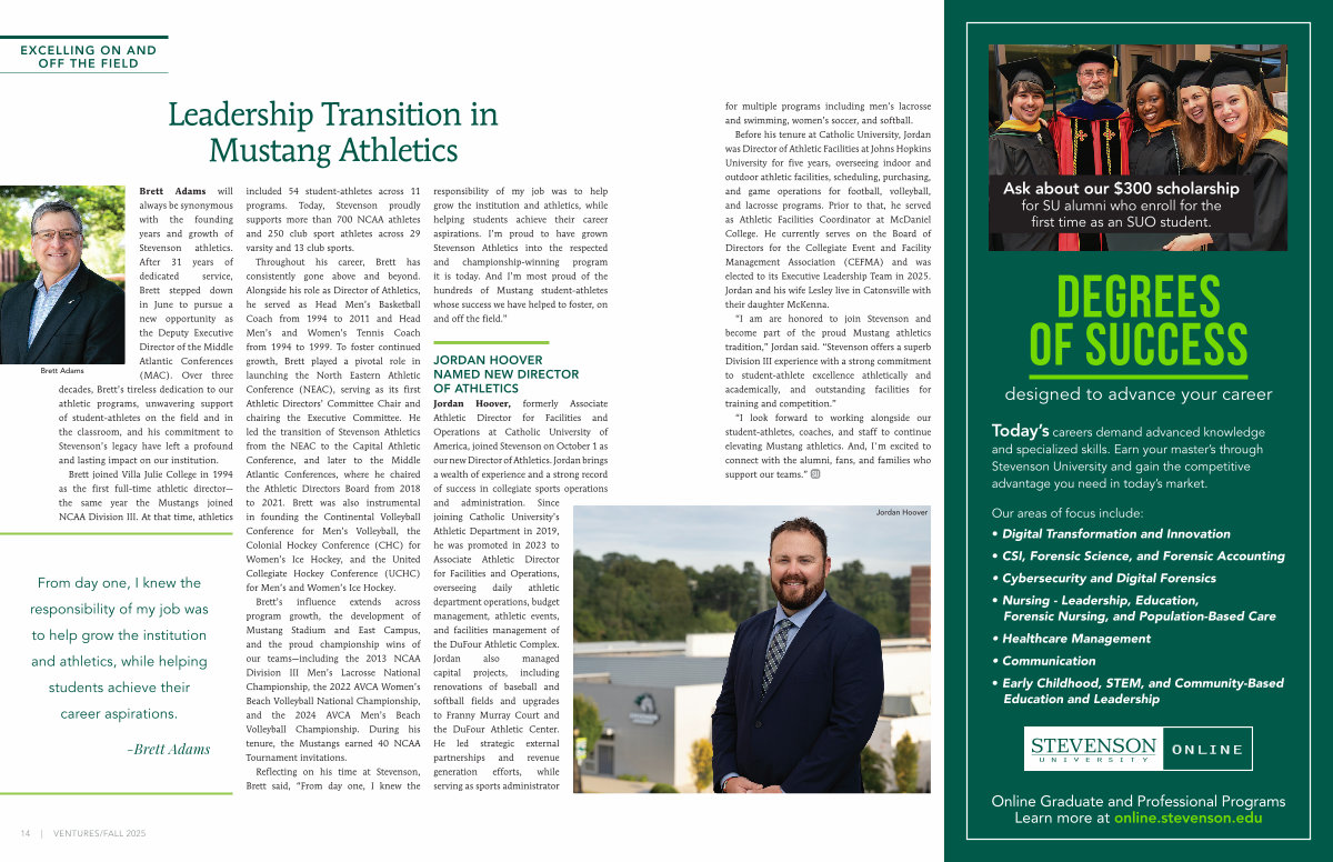 “ I am are honored to join Stevenson and become part of the proud Mustang athletics tradition,” Jordan said.“ Stevenson offers a superb Division III experience with a strong commitment to student-athlete excellence athletically and academically, and outstanding facilities for training and competition.”