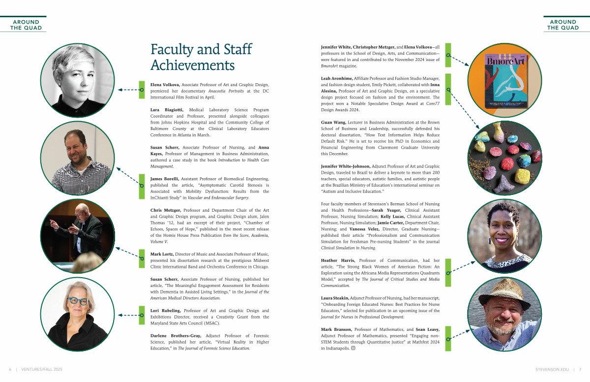 Jennifer White, Christopher Metzger, and Elena Volkova— all professors in the School of Design, Arts, and Communication— were featured in and contributed to the November 2024 issue of BmoreArt magazine.