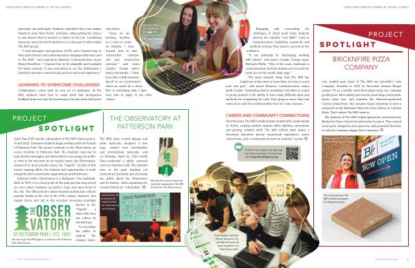 “ I took principles and practices of PR , and I learned how to write press releases and communication campaigns that were used in The Mill ,” said sophomore Business Communication major Ebony Woodbury . “ I learned how to be adaptable and teachable for future projects . It was interesting to see the information I learned in previous courses being used in a real word experience .”