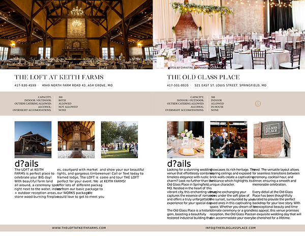 The LOFT at KEITH FARMS is perfect place to celebrate your BIG day ! With beautiful farm land all around , a ceremony spot right next to the water , indoor + outdoor reception areas , stone wood burning fireplaces , courtyard with market lights , and gorgeous timber framed lodge , The LOFT is perfect for your event . We offer lots of different packages from our basic package to our WORKS package . We would love to get to meet you and show your our beautiful venue ! Call or Text today to come and tour THE LOFT at KEITH FARMS !
