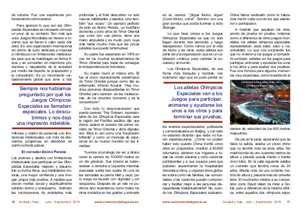 kilos. El muchacho miraba a su competidor como David debió de mirar a Goliat, pero a diferencia de la historia bíblica, entre aquellos dos olímpicos espeVerdad y Vida Julio – Septiembre 2016