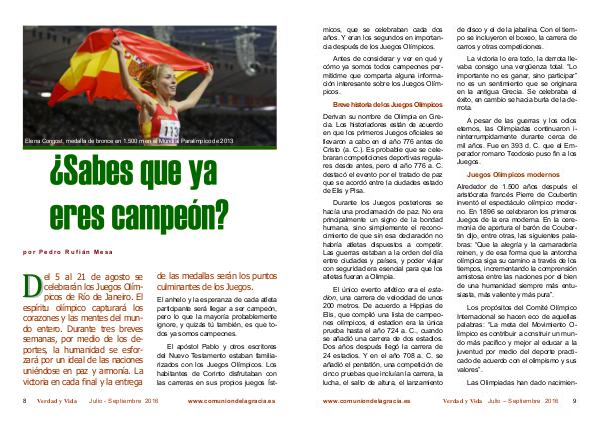 Las Olimpiadas han dado nacimienVerdad y Vida Julio – Septiembre 2016