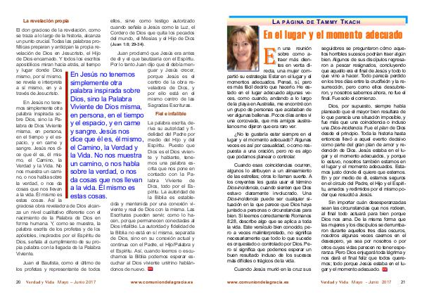 20 Verdad y Vida Mayo – Junio 2017 www. comuniondelagracia. es