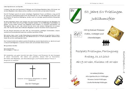 in diesem Jahr kann der Sportverein Frielingen sein 50-jähriges Bestehen feiern. Wir freuen uns mit den Mitgliedern über dieses schöne Jubiläum und sind stolz auf das bisher Erreichte.
