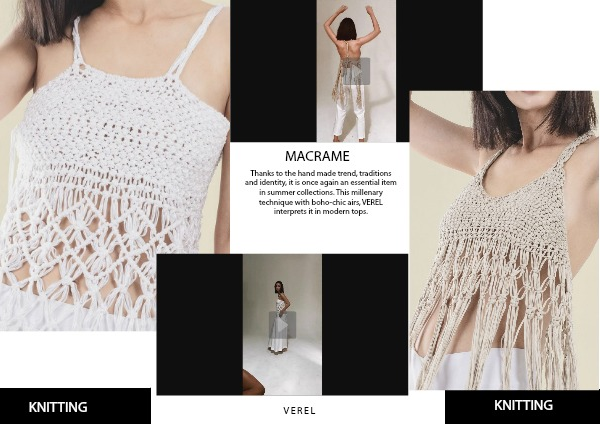 Thanks to the hand made trend, traditions and identity, it is once again an essential item in summer collections. This millenary technique with boho-chic airs, VEREL interprets it in modern tops.