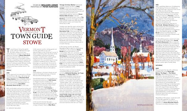 7PM After a gratifying afternoon of sightseeing and shopping , it ’ s time to indulge your inner gourmet with a delicious meal at one of the Mountain Road Village District ’ s finest restaurants . Pizza mavens will fall head-over-heels in love with the inventive creations at Piecasso – such as their “ Pesto Delight ” pizza with fresh basil and eggplant . Fans of new-style American casual cuisine will relish the laid-back atmosphere and seasonally-rotating beer selection at Doc Ponds . Idletyme Brewery boasts a wide-ranging list of house-brewed craft beers and a well-balanced menu featuring fresh ingredients harvested from the on-site Idletyme garden , and The Bench ’ s hearty wood-fired Vermont comfort food is a favorite of Stowe locals and visiting tourists alike .