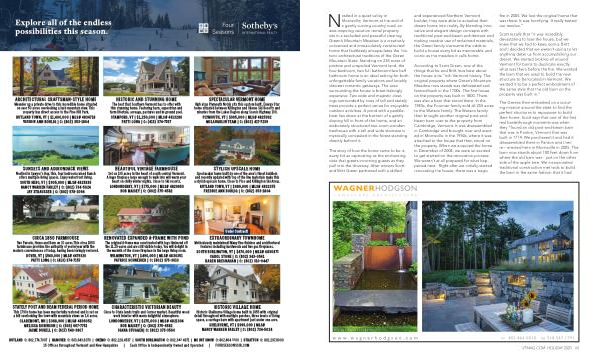 According to Scott Green , one of the things that he and Britt love best about the house is its “ rich Vermont history . The original property where Green ’ s Mountain Meadow now stands was deforested and farmed back in the 1700s . The first house on the property was built in 1800 . There was also a barn that stood there . In the 1940s , the Fournier family sold all 255 acres to the Watson family . The Watson family then brought another original post-andbeam barn over to the property from Cambridge , Vermont . It was disassembled in Cambridge and brought over and erected in Morrisville in the 1950s , where it was attached to the house that then stood on the property . When we acquired the home in December of 2004 , we were so excited to get started on the renovation process . We weren ’ t at all prepared for what happened next . Right after we initially started renovating the house , there was a tragic
