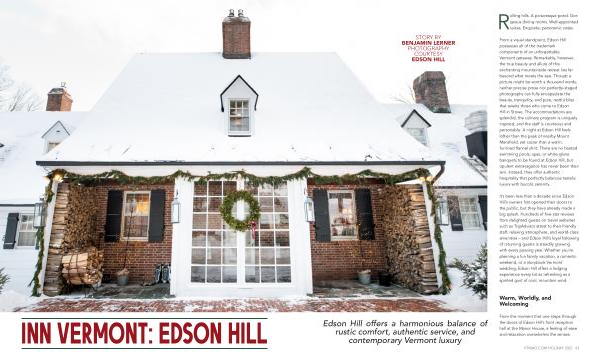Edson Hill offers a harmonious balance of rustic comfort , authentic service , and contemporary Vermont luxury