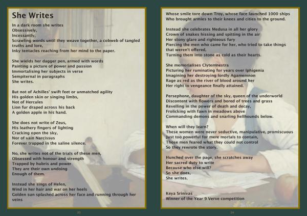 She wields her dagger pen , armed with words Painting a picture of power and passion Immortalising her subjects in verse Sempiternal in paragraphs She writes .