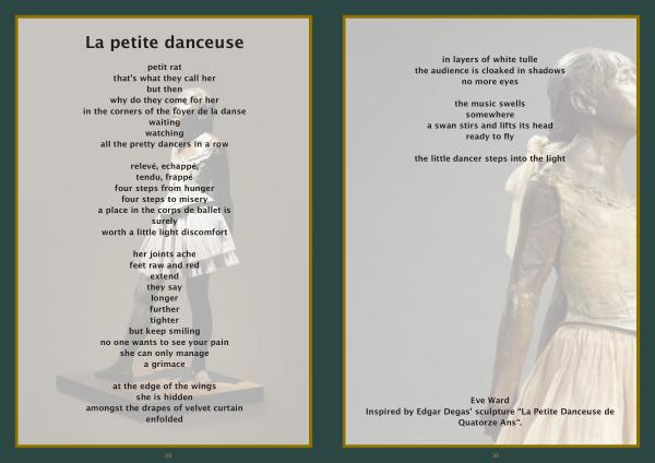 petit rat that ’ s what they call her but then why do they come for her in the corners of the foyer de la danse waiting watching all the pretty dancers in a row