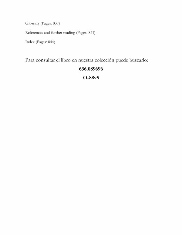 Para consultar el libro en nuestra colección puede buscarlo: 636.089696 O-88v5
