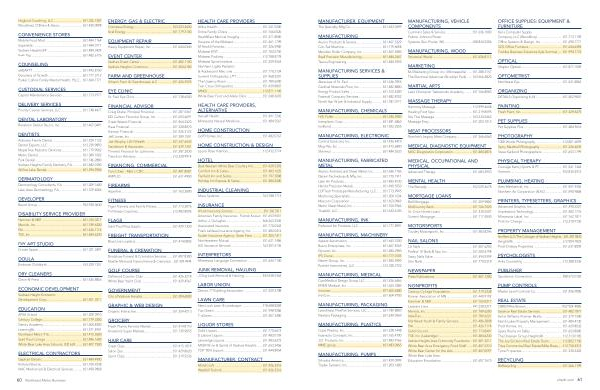 Allina Health...................................................... 651.241.9200 Entira Family Clinics......................................... 651.766.0520 HealthEast Medical Imaging........................... 651.471.8000 Hospice of the Midwest................................... 651.461.1799 M Health Fairview............................................. 651.326.5900 Midwest ENT.................................................... 651.702.0750 Midwest Podiatry.............................................. 612.788.8778 Midwest Spine Institute................................... 651.259.4563 Northern Lights Pediatric & Adolescent Medicine................................... 651.770.2124 Summit Orthopedics, LTD............................... 651.968.5201 The Urgency Room........................................... 651.789.6500 Twin Cities Orthopedics................................... 651.439.8807 MNGI................................................................. 612.871.1145 White Bear Foot and Ankle Clinic.................. 651.248.3692