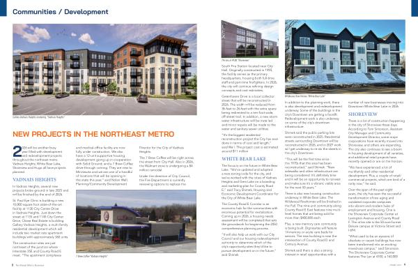 There is a lot of construction happening in the city of Shoreview these days. According to Tom Simonson, Assistant City Manager and Community Development Director, some major corporations have recently moved into Shoreview, and others are expanding. The city also continues to see a boom in housing development of all varieties, and additional retail projects have recently opened or are on the horizon.