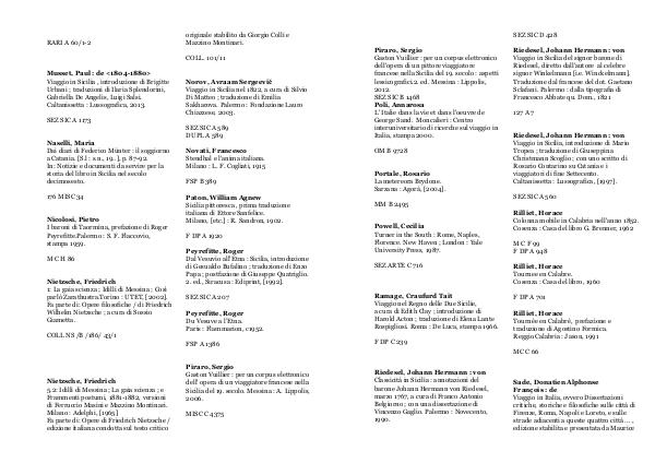 Musset, Paul: de < 1804-1880 > Viaggio in Sicilia, introduzione di Brigitte Urbani; traduzioni di Ilaria Splendorini, Gabriella De Angelis, Luigi Salsi. Caltanissetta: Lussografica, 2013.