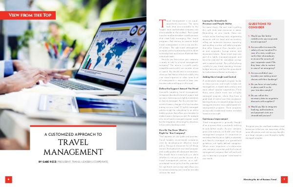 View from the Top A CUSTOMIZED APPROACH TO TRAVEL MANAGEMENT BY GABE RIZZI, PRESIDENT, TRAVEL LEADERS CORPORATE 6