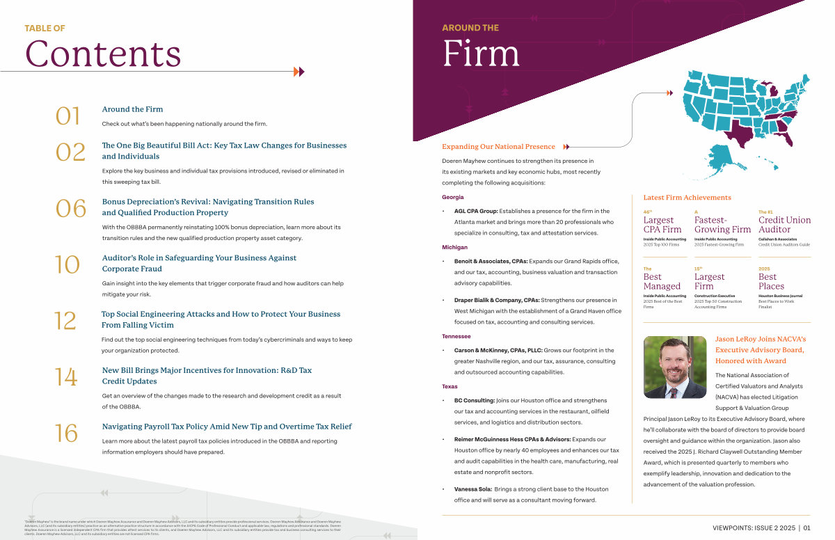 Doeren Mayhew continues to strengthen its presence in its existing markets and key economic hubs, most recently completing the following acquisitions: