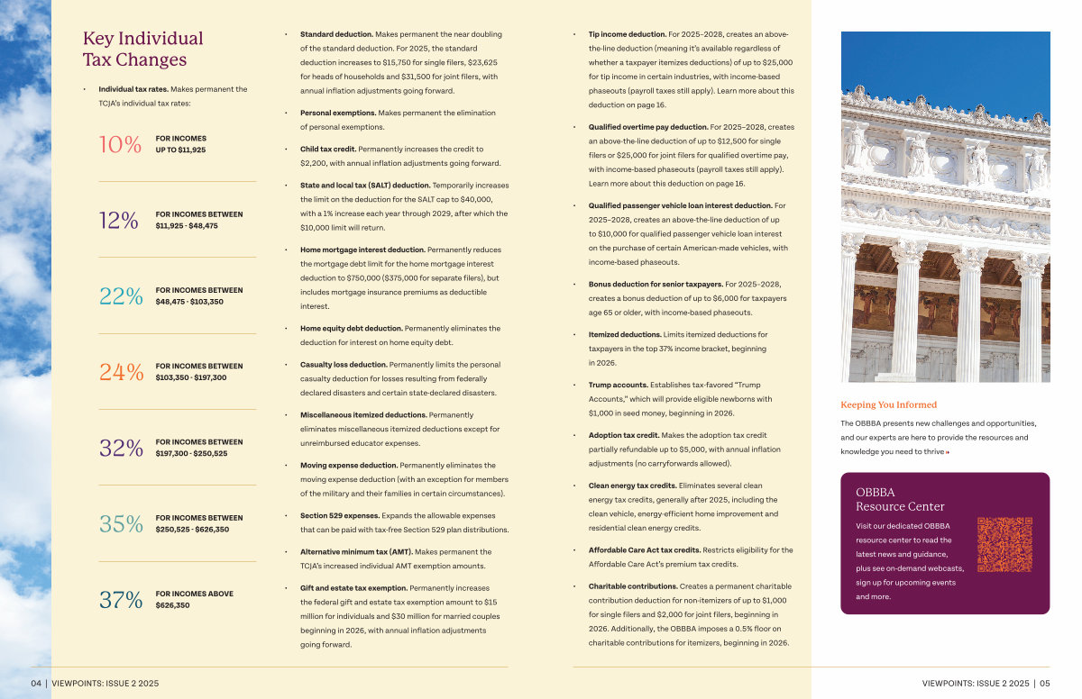 The OBBBA presents new challenges and opportunities, and our experts are here to provide the resources and knowledge you need to thrive