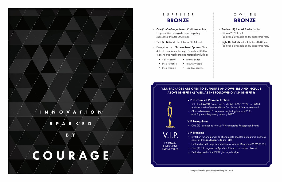 • One( 1) On-Stage Award Co-Presentation Opportunities( alongside non-competing sponsor) at Tributes 2028 Event