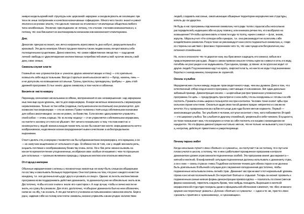 Не будь в нас программы подчинения символам, чего ради толпа слушалась бы нескольких распорядителей, надевших себе на руку повязку, или внимала речам тех, кто взобрался на возвышение? И чтобы организовать и повести куда-то толпу, нужен символ— флаг, знамя, хоругвь. Мораль учит: « Не сотвори себе кумира », т. е. она рекомендует не ослеплять себя воздействием символов. Разум тоже не рекомендует нам слепо подчиняться символам, и, глядя со стороны на шествия с флагами сторонников чего-то, что нам чуждо или безразлично, мы остаемся спокойными.