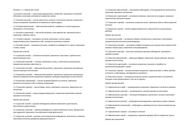 +1+2 (синий и зеленый) — чувство удовлетворенности, спокойствия, стремление к спокойной
