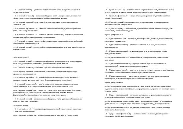 — 3— 5( красный и фиолетовый)— состояние стресса из-за за неудачных попыток достичь взаимопонимания, чувство неуверенности, беспомощности, желание сочувствия.