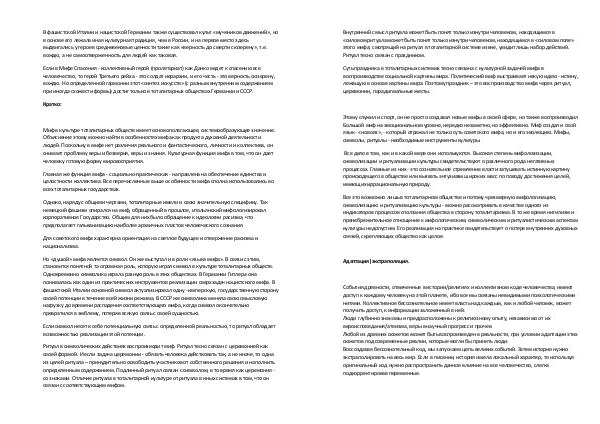 Главная же функция мифа- социально-практическая- направлена на обеспечение единства и целостности коллектива. Все перечисленные выше особенности мифа сполна использовались во всех тоталитарных государствах.
