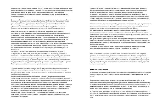<< Толпа приходит в состояние коллективного возбуждения, результатом чего и оказывается непреодолимое желание каких-либо активных действий; люди начинают крушить витрины, поджигать автомобили или— как это случилось во время Французской революции— отправляются штурмовать Бастилию. В состоянии коллективного возбуждения способность отдельного человека к логическому мышлению оказывается, как будто совершенно отключена. Отдельные личности кажутся в подобных обстоятельствах рабами некоего параметра порядка, который часто может быть воплощен в стихийно возникшем лозунге >>.