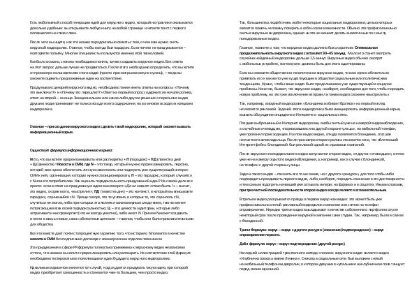 Главное, помните о том, что вирусное видео должно быть коротким. Оптимальная продолжительность вирусного видео составляет 30 – 45 секунд. Мало кто станет смотреть случайно найденный видеоролик дольше 1,5 минут. Вирусные видео обычно смотрят с мобильных устройств, поэтому они должны быть для этого адаптированы.