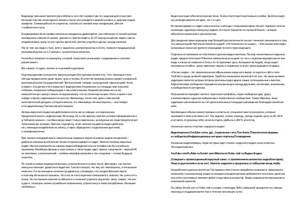 Отдельно остановимся на отсутствии в данном видео монтажа. Почему немонтажные вирусные видео предпочтительнее? Монтаж автоматически выдает то, что к созданию видеоролика в том виде, в каком он появился в Сети, кто-то приложил руку. Большинство людей, когда видят монтажные склейки, сразу перестают верить в подлинность всего происходящего на видео.