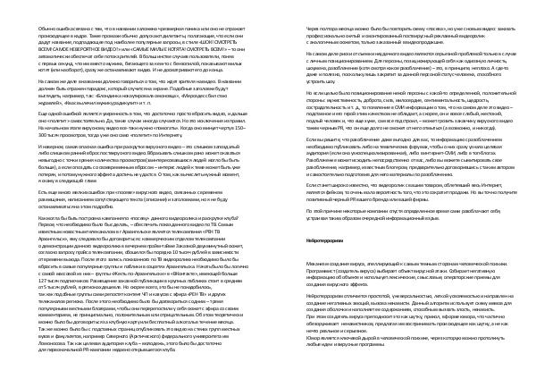 Как могла бы быть построена кампания по « посеву » данного видеоролика и раскрутке клуба? Первое, что необходимо было бы сделать, – обеспечить показ данного видео по ТВ. Самым известным новостным телеканалом в г Архангельске является телекомпания « РЕН ТВ Архангельск », ему следовало бы договориться с коммерческим отделом телекомпании о демонстрации данного видеоролика в вечернем прайм-тайме Заказной двухминутный сюжет, согласно запросу прайса телекомпании, обошелся бы порядка 10 тысяч рублей в зависимости от времени выхода. После этого запись показанного по ТВ видеоролика необходимо было бы вбросить в самые популярные группы и паблики в соцсетях Архангельска. Начать было бы логично с самой массовой из них – группы « Жесть по-Архангельски » в « ВКонтакте », имеющей больше 127 тысяч подписчиков. Размещение заказной публикации в крупных пабликах стоит в среднем от 5 тысяч рублей, в регионах дешевле. Но скорее всего, это бы не понадобилось, так как подобные группы сами репостят контент ЧП и казусов с эфира « РЕН ТВ » и других телеканалов региона. После этого необходимо было бы договориться с одним – тремя популярными местными блогерами, чтобы они перерепостили у себя сюжет с эфира со своим комментарием, не принципиально, положительным или отрицательным. Об этом теоретически можно было бы договориться за клубную карту или бесплатный алкоголь в течение месяца. Так же можно было бы с подставных страниц опубликовать это видео на стенах групп местных вузов и факультетов, например Северного( Арктического) федерального университета им Ломоносова. Так как целевая аудитория клуба – молодежь, этого было бы достаточно для первоначальной PR-кампании недавно открывшегося клуба.
