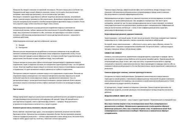 Торговые марки, бренды, афоризмы философов, жесты политиков, звёзды эстрады и кино становятся той символической реальностью, которая формирует сферу нашего сознания. Мы погружаемся в плотный информационный поток.